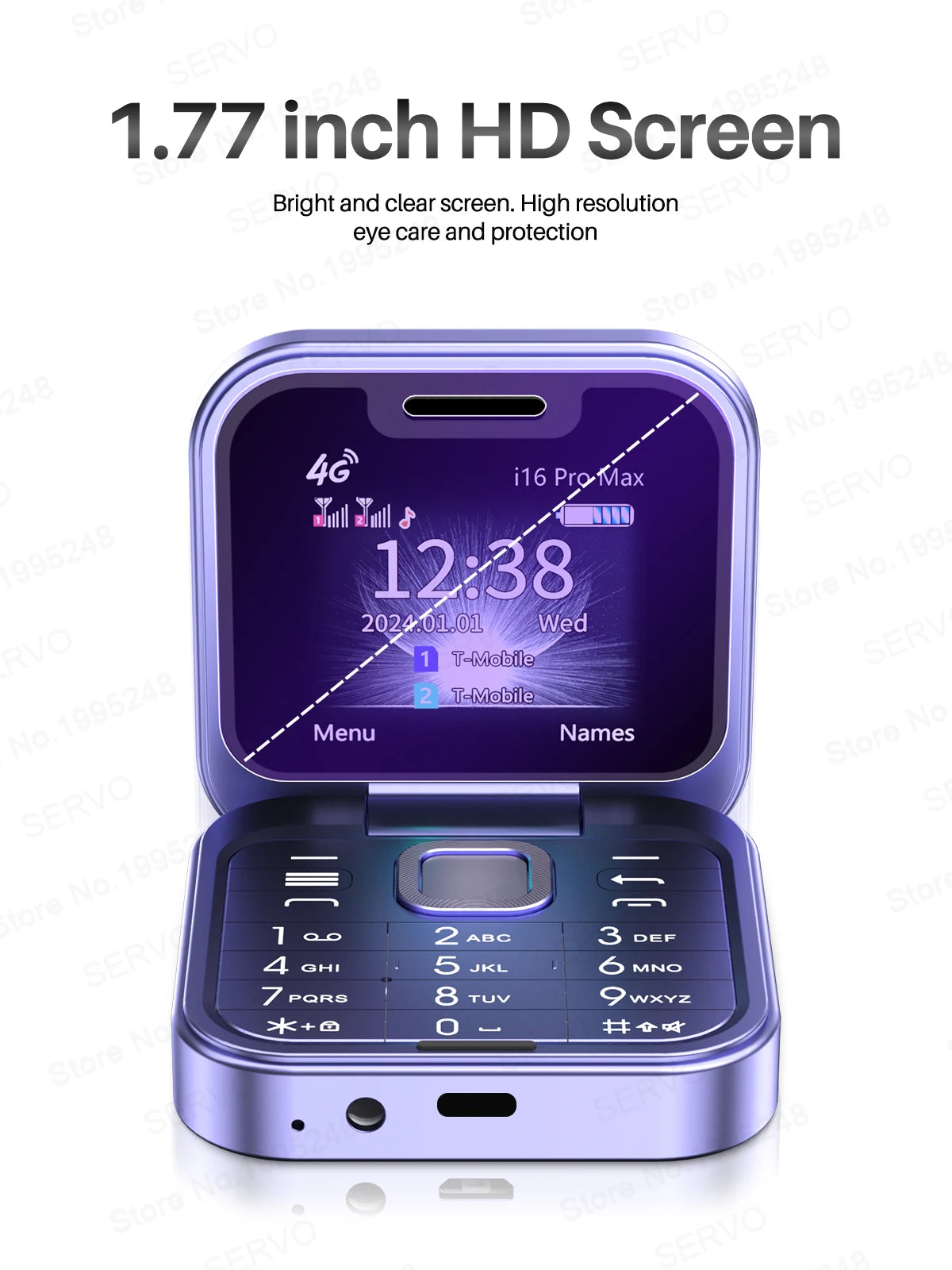 2025 NEW SERVO 4G LTE Cellular Folding Mobile Phone Dual SIM Card Speed Dial Magic Voice Call Recording Blacklist Flip Cellphone
