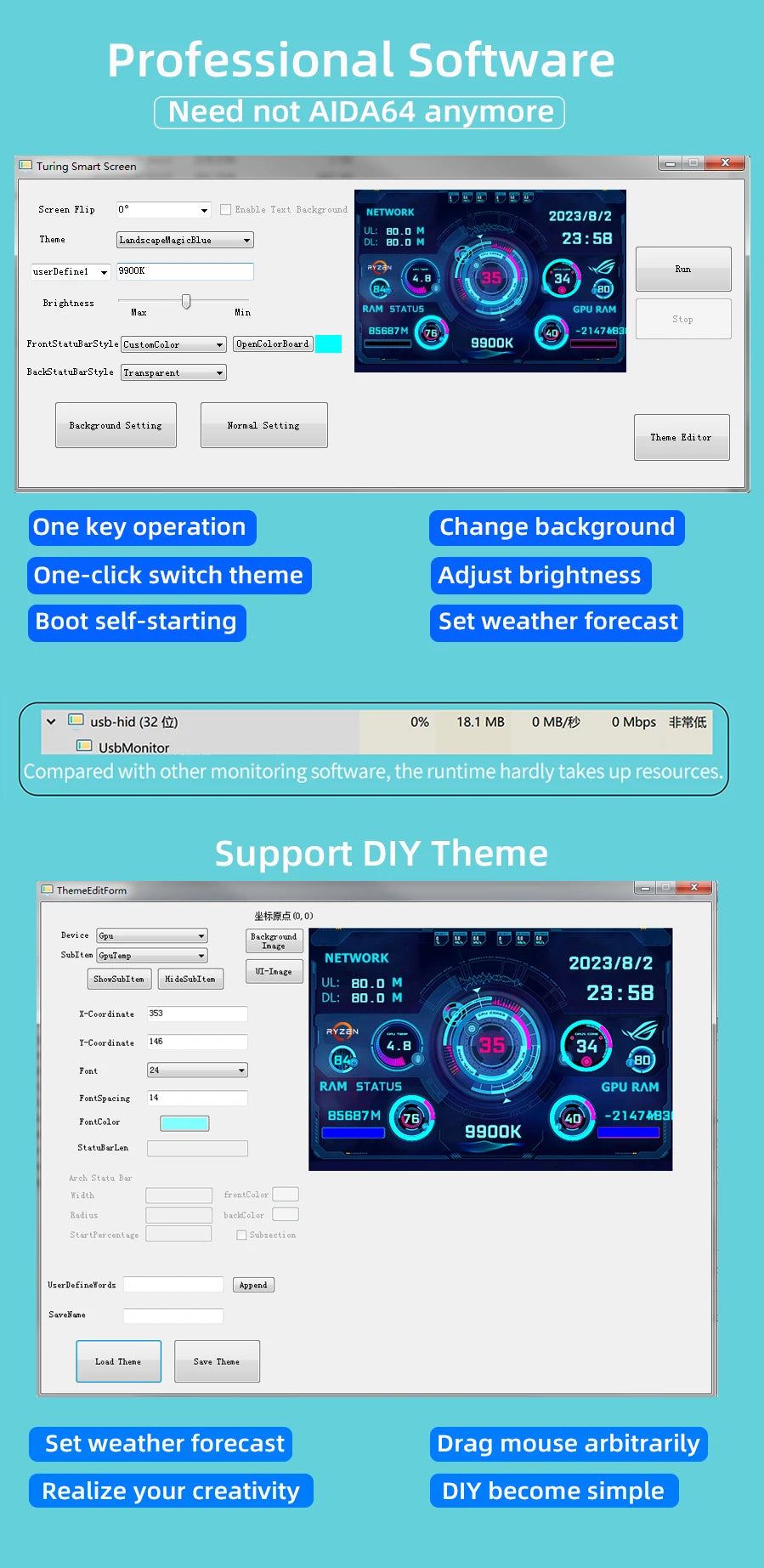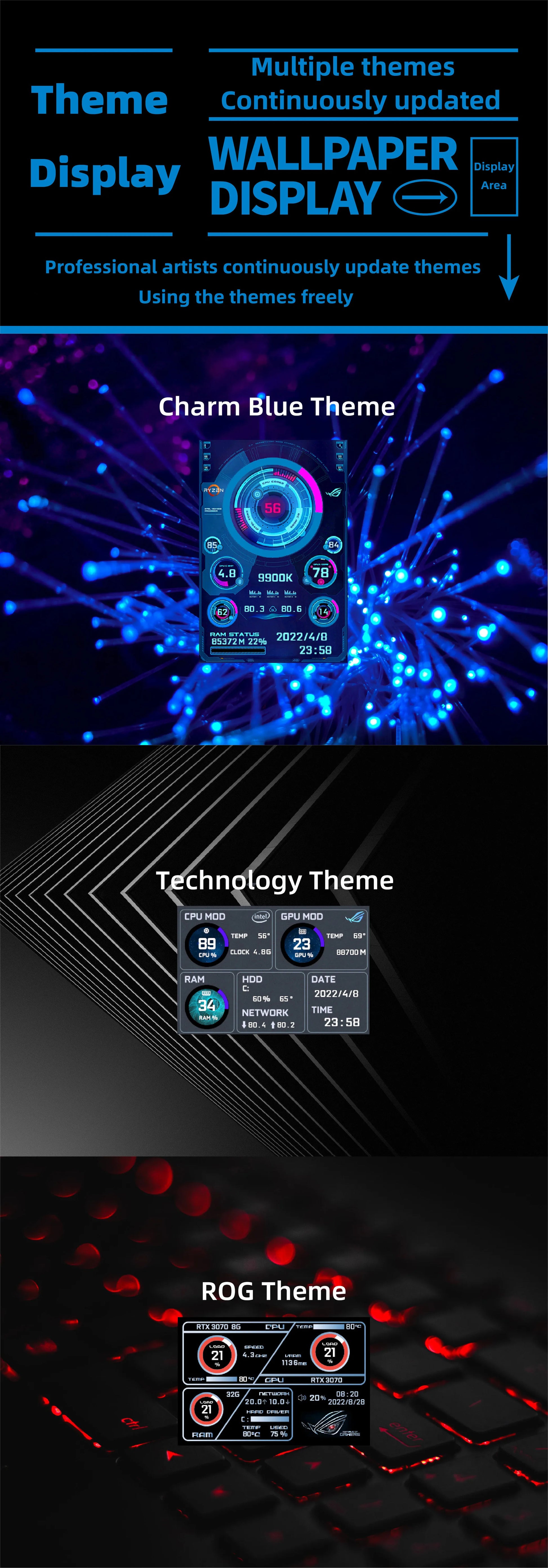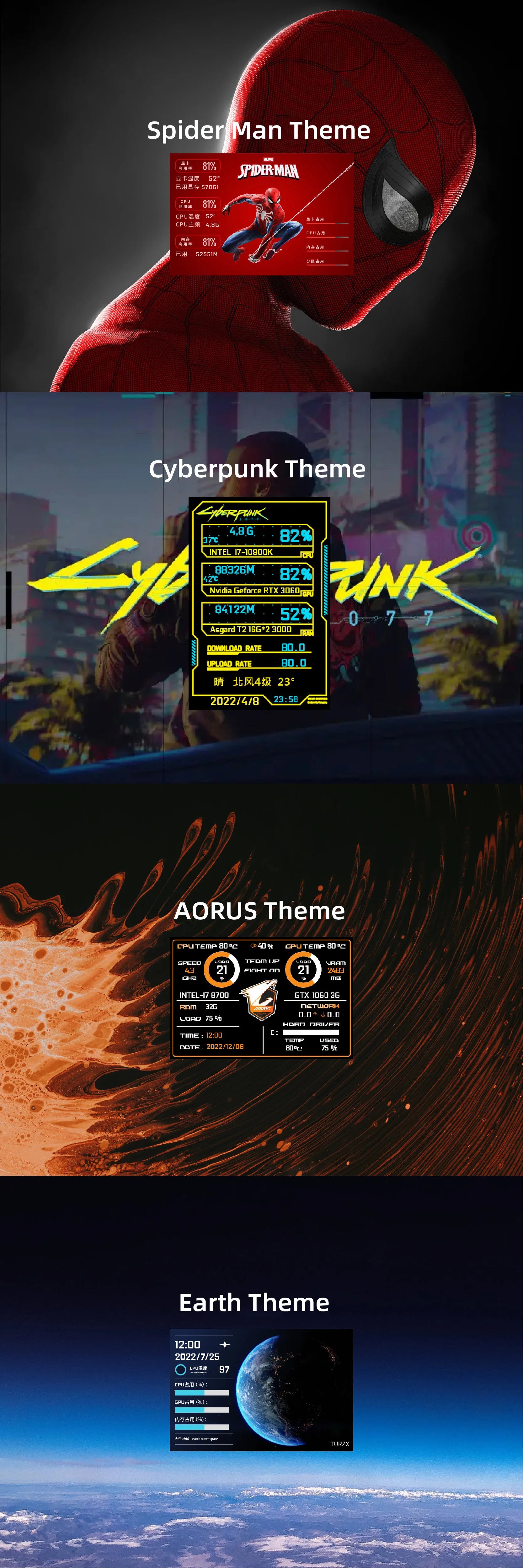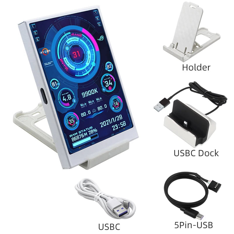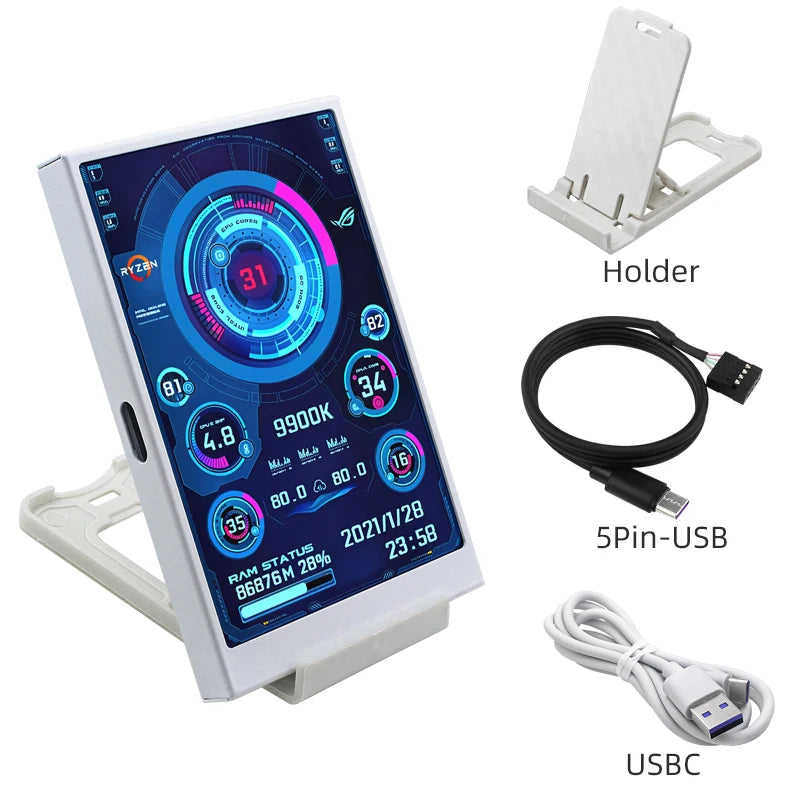3.5 Inch Type-C Secondary Screen for Computer CPU RAM GPU HDD Monitor 320*480 IPS LCD ISB Display TURZX Software NO AIDA64