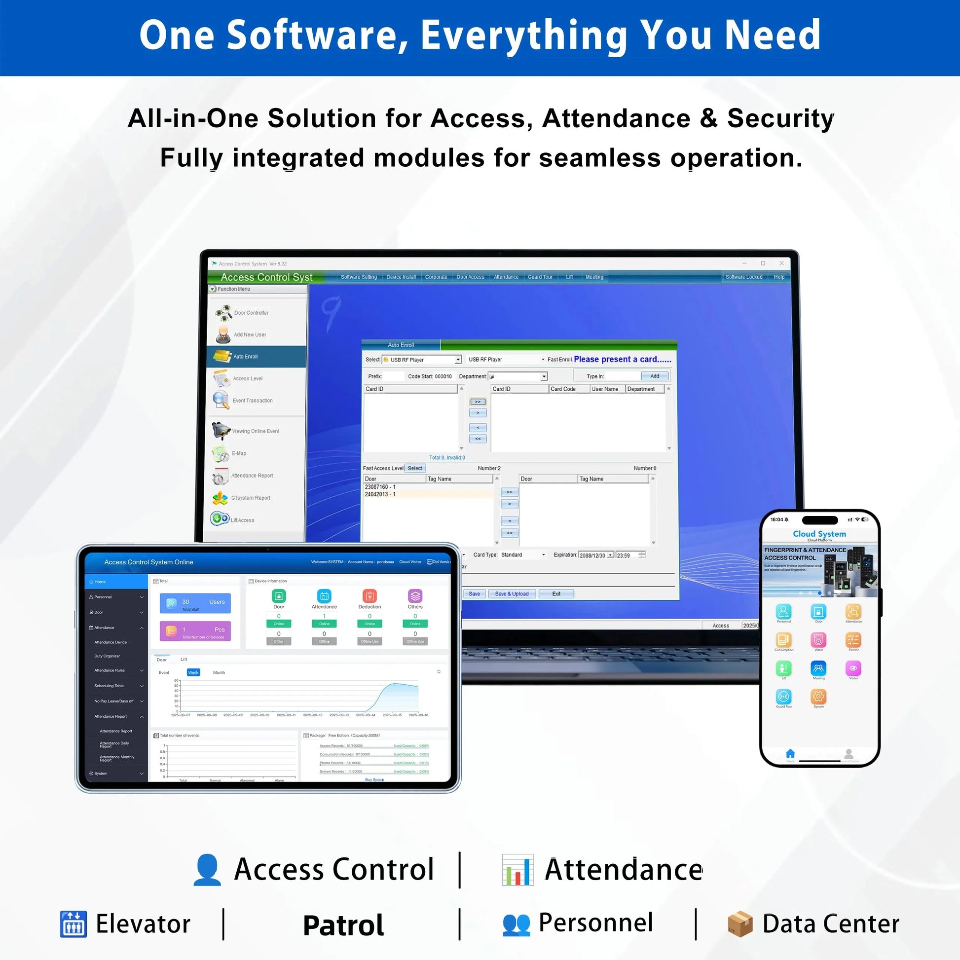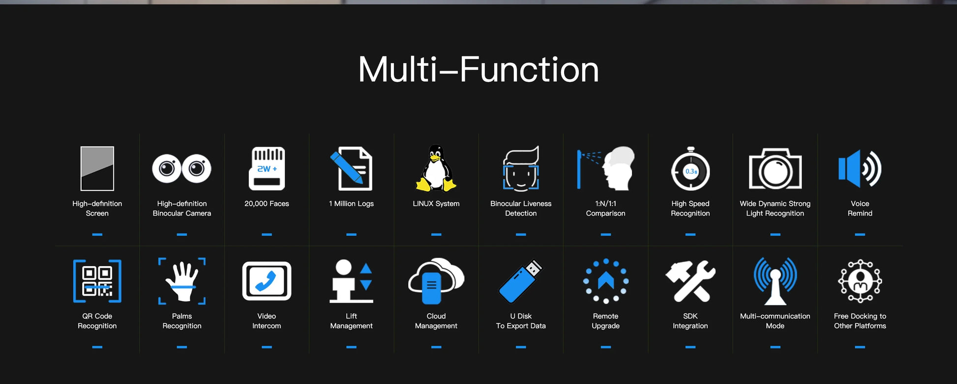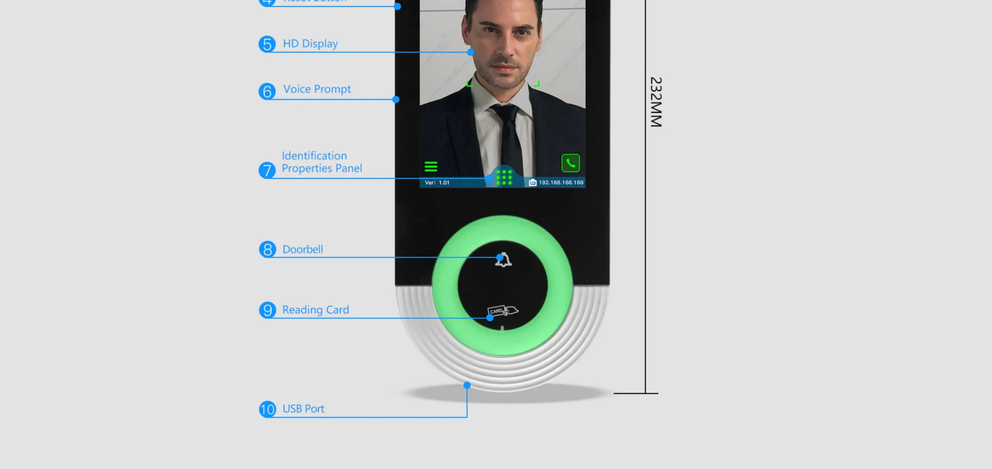 Used For: Access Control, Time Attendance, Elevator Control, Video Intercom, Cabinet Lock
