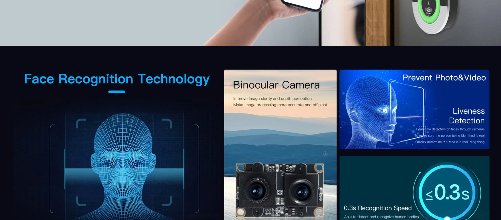 Recognition Distance: 0.3m-3m(Liveness Detection>1.5m)