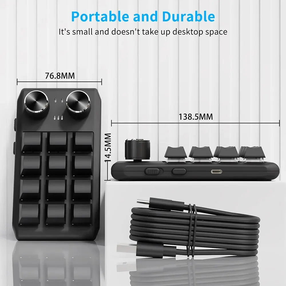 Bluetooth Programming Macro Custom Keyboard RGB 12 Keys 2 Knobs Copy Paste Photoshop Gaming Keypad Mechanical Hotswap Macropad
