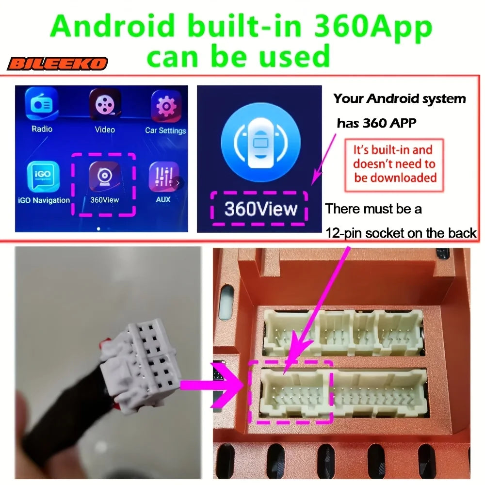 Car Camera, 360° Surround Bird View, Four Way Left/Right/Front/Rear View, AHD 1080P/720P, Universally Applicable