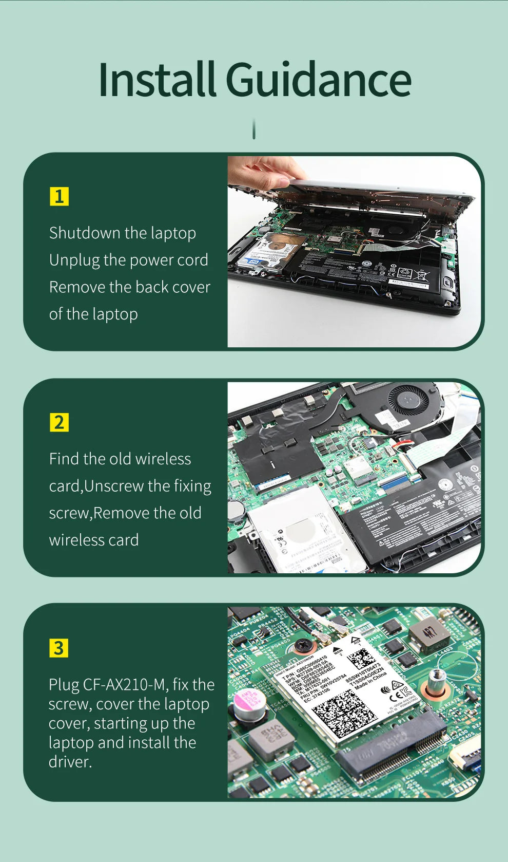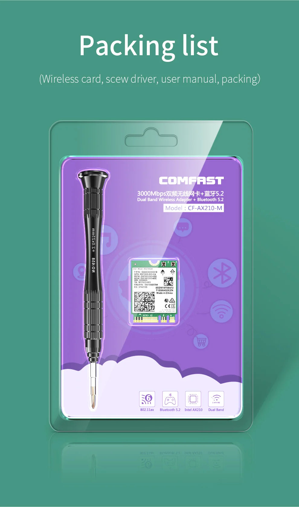 comfast Intel AX200/AX210 WiFi 6E 2.4GHz/5GHz/6GHz Network Adapter 5400Mbps Bluetooth 5.3 For Laptop Ultra-Low Latency M.2/NGFF