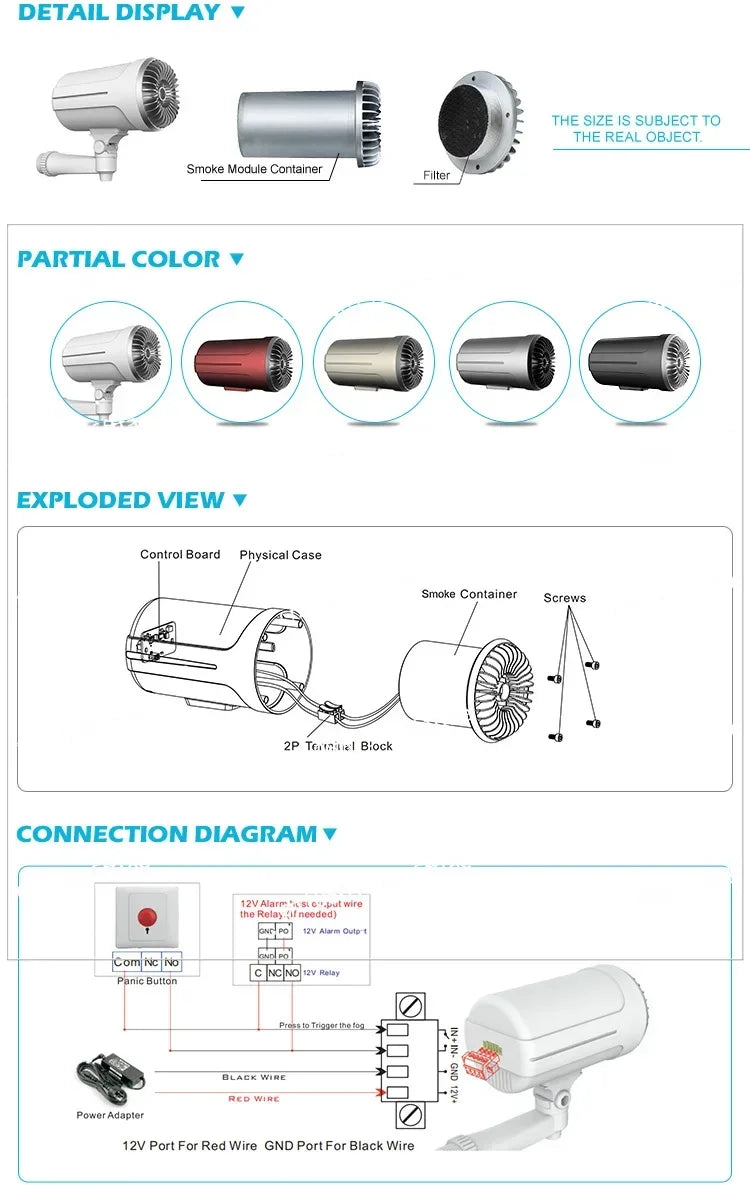 Trigger Method: Panic Button, wire connect to alarm host &Trigger by alarm system