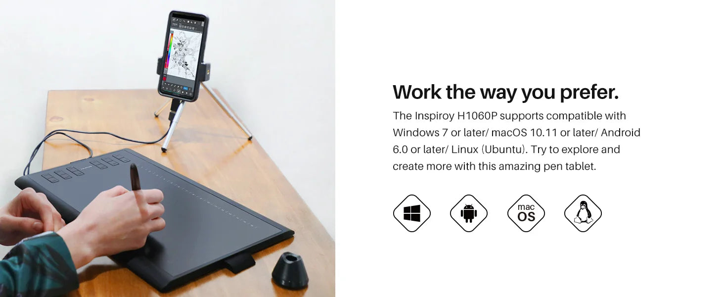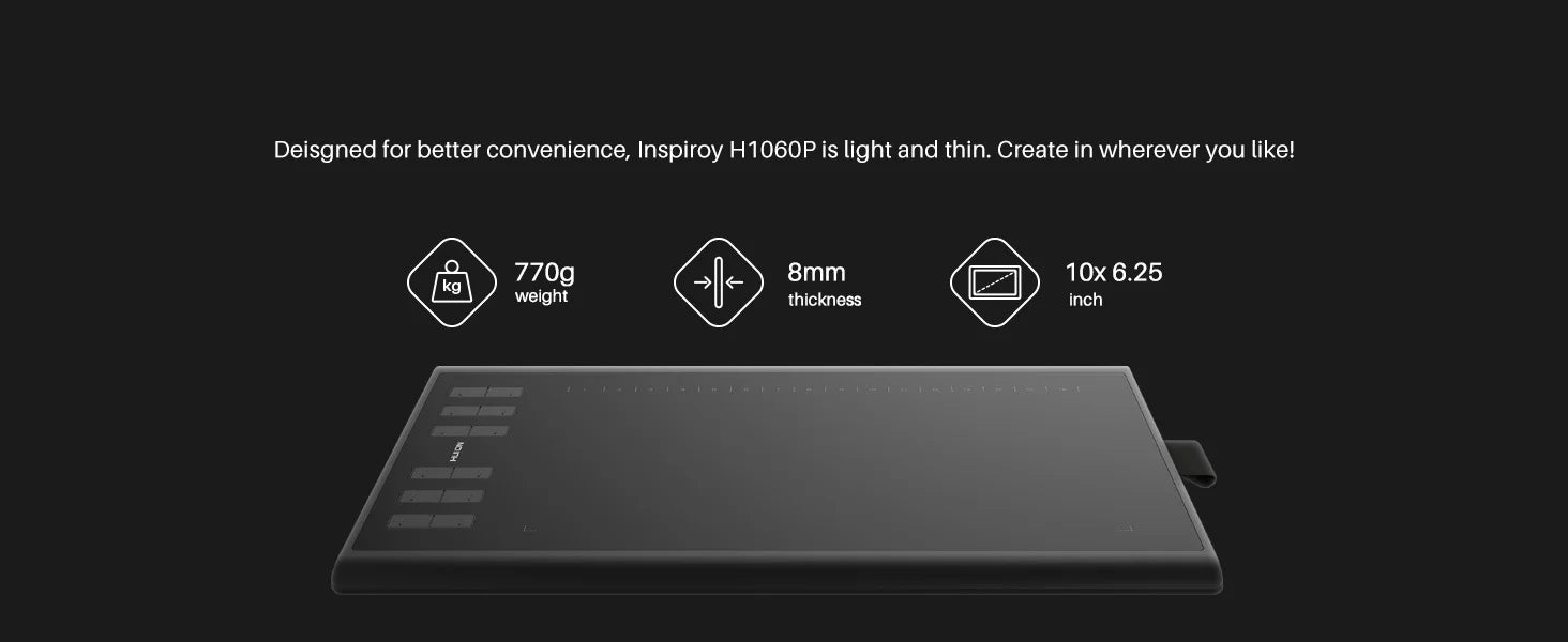 HUION Inspiroy H1060P Graphics Drawing Tablet with 8192 Pressure Sensitivity Battery-Free Stylus and 12 Customized Hot Keys, 10