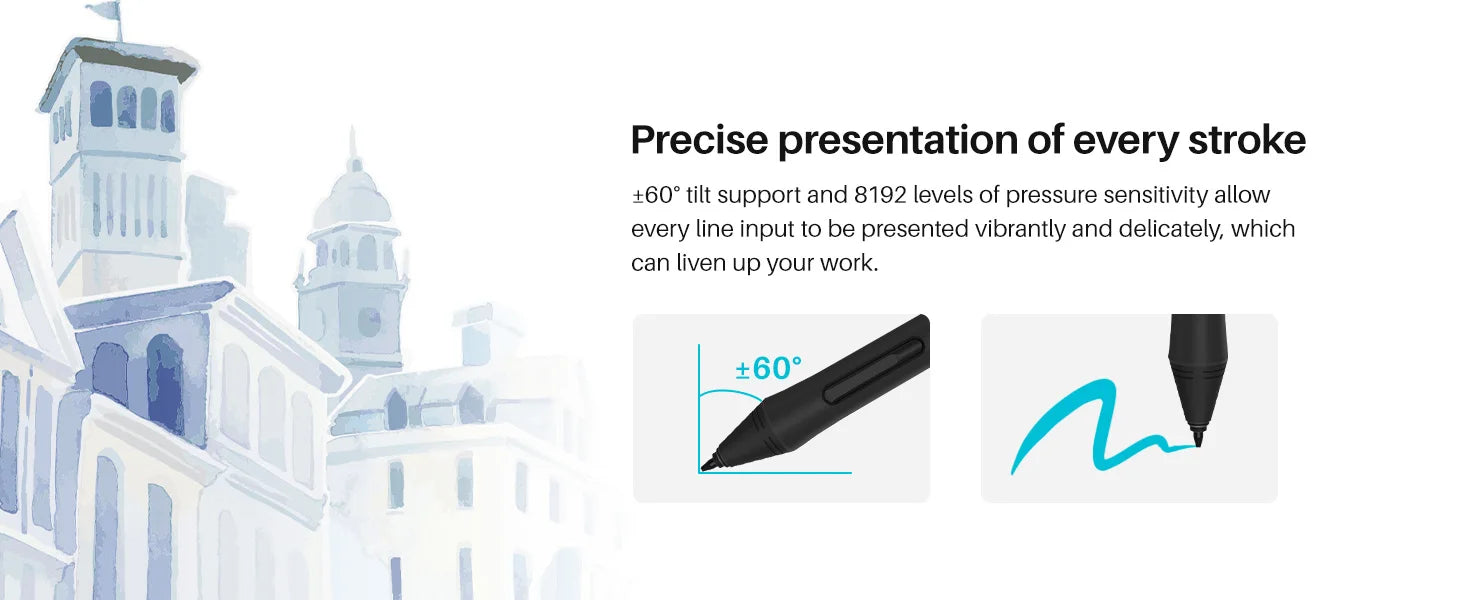 Pen Technology: 8192 levels of pressure sensitivity, 60° tilt