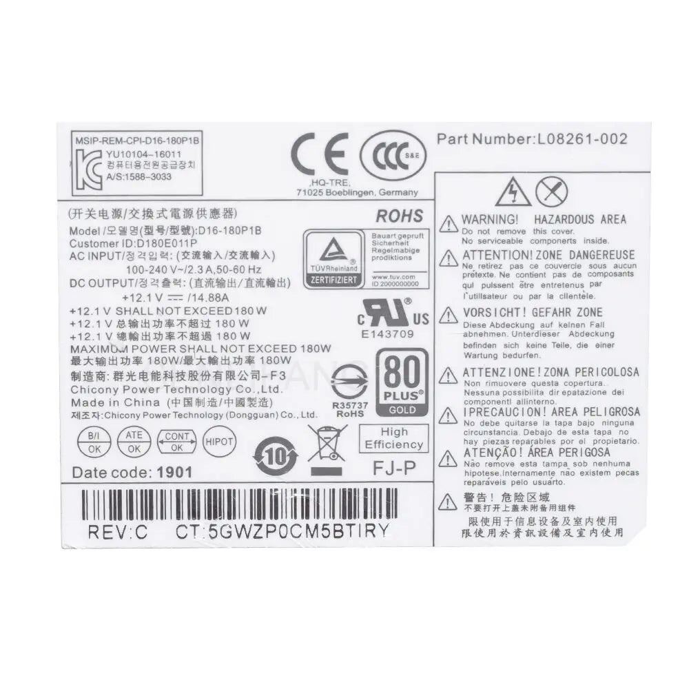 New 180W PSU L08261-002 PCH023 D16-180P1B 901763-002 PA-1181-6HY PCG004 For ProDesk 400 G5 280 G4 600 800 G3 Power Supply