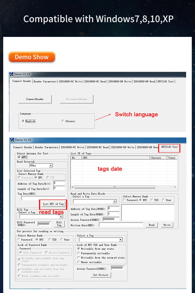 Read distance: 50cm(depends on tag)