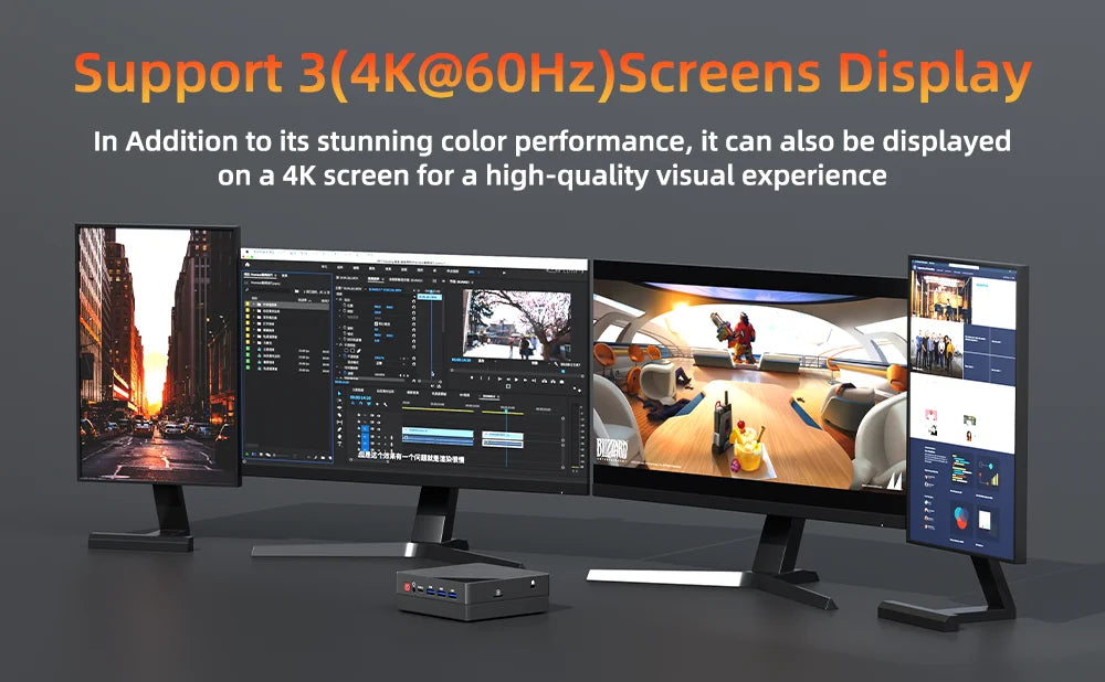 TexHoo Mini PC Computer Gaming AMD Ryzen7 5800H Pocket Dual HDMI LAN WIFI6 Windows 11 Pro NUC Office DDR4 NVMe Four Display