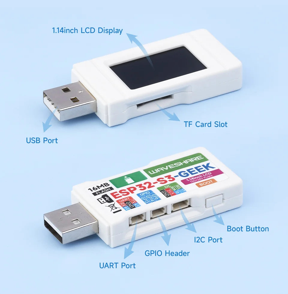 Waveshare ESP32-S3-GEEK Development Board Based On ESP32-S3R2 Controller Chip With 1.14inch 65K Color LCD Supports WiFi & Blueto