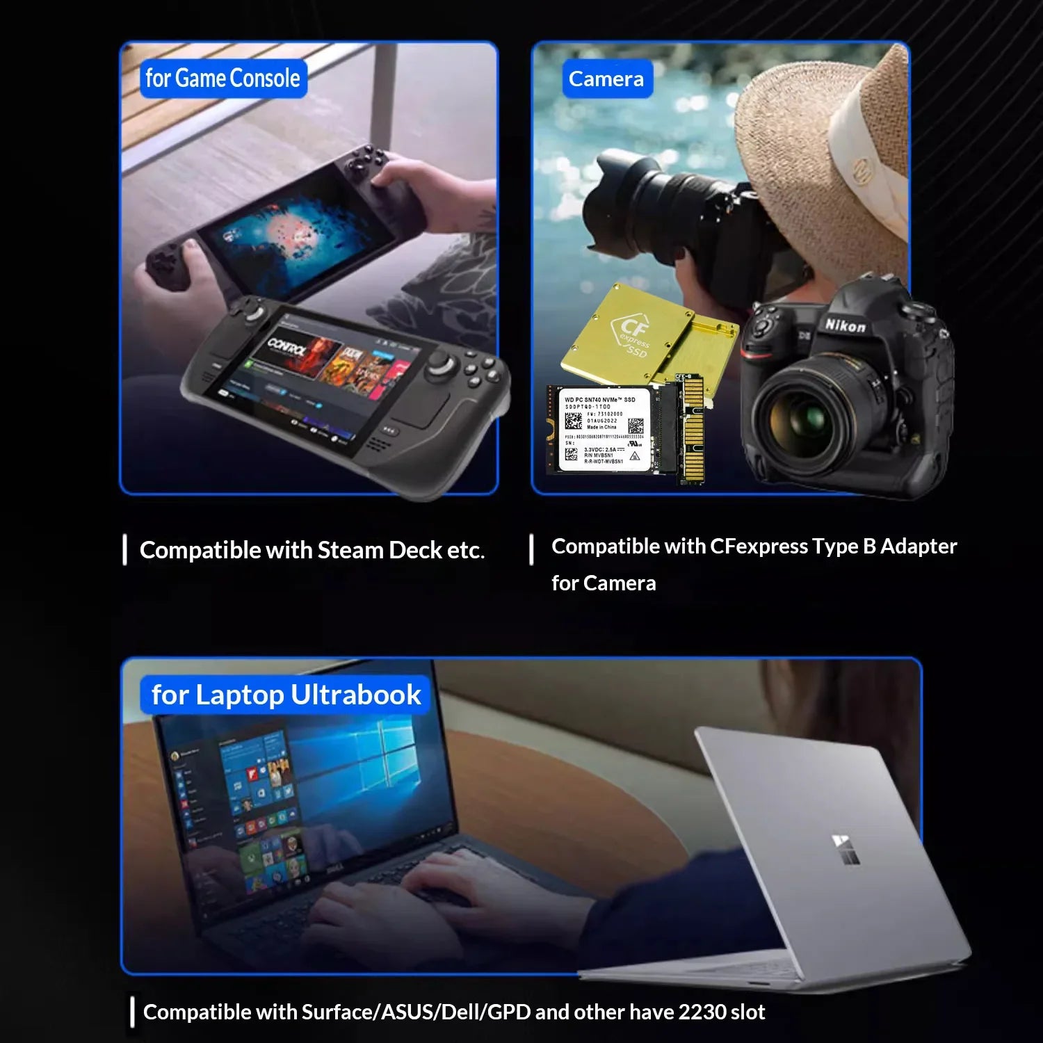 Western Digital 2TB 1TB SN740 NVMe PCIe 4.0 M.2 2230 WD SSD for Rog Ally Surface Steam Deck GPD Laptop Tablet Mini PC Computer